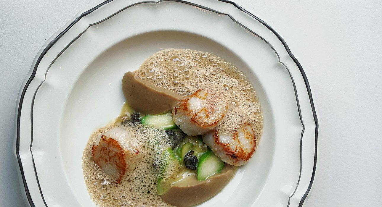 J'ai pris de la langue-de-bœuf avec du topinambour et de la mousse aux champignons ainsi qu'une tarte à la pâte feuilletée avec des queues de bœuf comme collation et des pétoncles avec des morilles, des asperges et du chou-fleur comme plat principal.